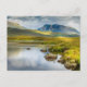 Postcard of Scottish Highlands landscape. The Highlands in Scotland are a nation beauty spot, they are wild and remote wilderness of stunning mountain landscapes and vistas. The photograph shows a river lake with dramatic lighting and mountains in the background.