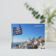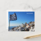 Postcard with Greek flag on Oia village, Santorini Island in Cycladese