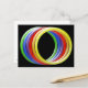 Rings in rainbow colours of green, blue, purple, red, orange, and yellow are stacked horizontally on a black background. Highlights give image a three dimensional look.