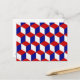Illusion. Multiple three dimensional blocks in red, white, and blue, are staked like building blocks. Look at them long enough and the "top and sides" seem to change positions.