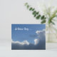 Photograph of dark clouds with "silver" lining, against a medium blue sky. Personalise existing text ("A New Day ...") if desired.
