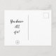 Classy, but simple postcard for those times when you have a specific fleeting thought about someone and want to 'quickly' let them know. A phone call will certainly do, but this special keepsake lasts for however long the recipient desires. Reach out and surprise someone with your thoughtfulness! There are loads of color and a variety of messages to choose from.