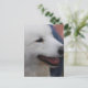 Sweet white samoyed puppy dog with a sweet expression.