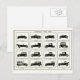 Perfect for sending a quick note to the men in your life, here's a lower postage postcard featuring a unique vintage illustration that shows different types of automobiles.