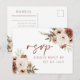 Boho Elegant Floral Wedding Wedding Website Enclosure Card RSVP beige flowers with sage green Elegant Floral Wedding RSVP postcard Boho Chick Ivory with its fall terracotta and beige palette and delicate botanical watercolor flowers is a perfect way to invite your family to celebrate your wedding day. Boho Font lettering is a terracotta but can be changed to your wedding colours. The soft pastel colours of RSVP postcard are a quiet ode to nature and the changing of seasons. Both the front and back of these custom wedding RSVP postcard provide you with plenty of space for all of your wedding details or just add a your photo. Personalise this wedding invitation enclouser RSVP postcard easily and quickly, simply press the customise it button to further re-arrange and format the style and placement of the text. Come summer, spring or fall , these modern wedding invitation reception card can add to that beauty and sparkle to your big day! Category: fall wedding invitation enclouser cards; RSVP postcards, please reply cards boho chick kindly reply cards beige ivory watercolor invites RSVP postcard Colours: ivory quince colour theme: beige, terracotta, pale copper, ivory, white, ecru, sage green, black and white. You can even adjust the entire watercolor flowers theme of the card itself by clicking on the filtres on the top of menu. If you would like this design on another product, or need help in any way, please contact me through my store.