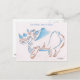 This postcard features an original drawing by artist Jayne Somogy ("Somogyi") of a whimsical, stylised rhinoceros in blue and brown.