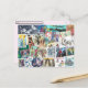 This postcard has been designed using scans of postage stamps from around the world. (USA not included as those stamps are copyrighted and cannot be used). Stamps from: Australia, Bahamas, Chile, China, France, Finland, Germany, Hong Kong, India, Israel, Japan, Korea, Latvia, Netherlands, New Zealand, Russia, Singapore, Sweden, Switzerland, Taiwan, and Ukraine.