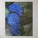The painting depicts a cluster of blue grapes set against a dark green background. The rich, deep tones of the grapes stand out vividly, each one glistening with a natural sheen, while the dark green backdrop adds a sense of depth and lushness. The colours create a striking contrast, highlighting the vibrancy of the fruit while maintaining an overall natural, tranquil mood. The composition feels organic, with the rounded shapes of the grapes softened by the deep, velvety tones of the background.