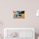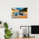 Poster is shown with a photo print of a beautiful beach scene at sunset.