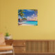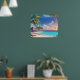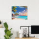 Poster is shown with a photo art print of a beautiful tropical ocean beach scene.
