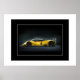 Poster shown with a photo print of a sleek sports car.