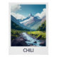 Admire the wild and grandiose landscapes of Chile with this poster. A river winds through a verdant valley, dominated by a majestic snowy summit. Perfect for a wall decoration inspired by nature and adventure.