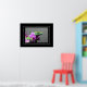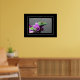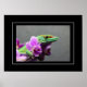 Poster shown with a photo print of a beautiful gecko on orchids.