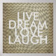 square poster with distressed graphic art pattern and text quote live dream love laugh. artwork copyright Ann Powell.