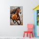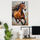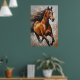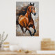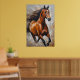 An HD portrait oil painting style poster illustrating a brown horse running casually with its hair flowing in the wind