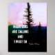 poster John Muir quote the mountains are calling with original photo art of mounting pine and text for decor in home or office. Original photo art copyright Ann Powell
