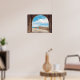 Poster is shown with a photo print of a beautiful stone arch scene with seabirds.