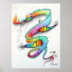 This is an original drawing by artist Jayne Somogy (“Somogyi”) of an imaginary fire-breathing dragon done in a whimsical, stylised manner in bright rainbow colours. Cute, not scary!
