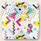 Check out this fun Memphis style pattern chraacterised by bold colours, geometric shapes, and whimsical designs.