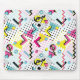 Check out this fun Memphis style pattern chraacterised by bold colours, geometric shapes, and whimsical designs.