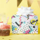 Check out this fun Memphis style pattern chraacterised by bold colours, geometric shapes, and whimsical designs.