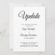 Here's a simple card to notify your guests if it's become necessary to change your wedding date. Use the template fields to add your personal details and make this elegant, minimalist design your own. The white background can be changed to any colour you prefer. All fonts and colours are also editable. Please reach out with any special requests or for customising assistance. Other pieces with alternate wording are available in the collection.