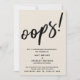This suite's distinction is due to the modern, handwritten script font used for accent phrases. If you're in the position of needing to inform your wedding guests that you've had to change your big date, here is a humourous option. In this piece, the hand-lettered script font was used to create a simple graphic depicting the word "oops!". Use the template fields to add your personal details and make this unique, modern design your own. The background can be changed to any colour you prefer. A horizontal option is also available. Please reach out with any special requests or for customising assistance. // 100 //