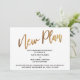This suite's distinction is due to the modern, handwritten script font used for accent phrases. In this piece, the hand-lettered script font was used to create a simple graphic that reads "New Plan", large and bold. The graphic has been enhanced by a faux-metallic smooth gold effect. The wording in my placeholder text is geared towards a wedding that's being postponed, but if your event is being cancelled, this design could accommodate that need too. Use the template fields to add your personal details and make this unique, modern design your own. The background can be changed to any colour you prefer. Please reach out with any special requests or for customising assistance. // 105 //