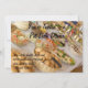 A table filled with generous amounts of bread, salad, meat and desserts is the background for this pot luck invitation.