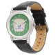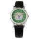 A colour pencil drawing of a pile of gold in a bean pot decorated with cobalt coloured shamrocks and a four leaf clover adorns this lucky watch!