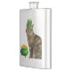The product is a good size and came exactly as it was pictured. The lid is not attached to the flask, which could be dangerous on drunken nights... The print came out surprisingly well and looks very sharp. Would definitely recommend.