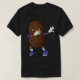 I give wanted to give this a 4 instead of a 5 because these Basic DARK T0shirts run unexpectedly SLIM or Narrow. Which is great if you do not have a potbelly, but I have a paunch. It isn't the shirt's fault that I've got a beer belly. The design and shirt itself is a quality cotton shirt. The color is more of a deep purple, but still a very pretty color. The Basic DARK T-shirts run a bit SLIMMER than the Basic Ts. The neck is a fraction narrower (or seems to be narrower) also. I'm a paunchy middle-aged woman and my neck is 12 inches (31cm) thick and the neckline fell about the same as in the photo of the man, and I had the desire to tug it a bit. So if you're a thick necked man or like loose shirts, be aware these are slimmer shirts. Once I get rid of my lockdown paunch it'll look great. The shirt washed well in cold water with no apparent bleeding. We don't have a dryer, so it hung dry. Did not shrink. Love the colors and the design. The design looks smaller on my shirt than it does on the model on-line. But still, it looks good on the shirt. The printing looks as it does on the model, just the size seems fractionally smaller. Washed garment in cold water, hung dry and design appeared unaffected.