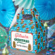 A playful and festive holiday pattern shows cute potatoes wearing Santa hats against a snowy blue background. It adds a quirky and funny touch to Christmas celebrations. This whimsical winter design combines bright seasonal colours with cheerful character repeats. It's perfect for anyone who enjoys a fun and unique holiday style. On the front is a label black, red and green festive text reading "Have A Spudtacular Christmas" Below this text are two happy brown potatoes facing each other one with a pink bow on its head, in-between the potatoes is a template to add your own text to personalise.