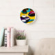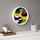 This unique, high-quality wall clock is vibrantly printed, protected by a high-impact plexiglass crystal face and features a pre-installed backside hanging slot for easy hanging and a non-ticking design.