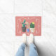 Southwestern themed front door mat done in rusted coral background and graphics of three colourful potted cactus plants. A white decorative border around the cactus gives this mat an finished look. Customise to add your own text or leave as is for a pretty way to welcome guests to your home.