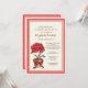 A vibrant design of a red potted plant with a subtle, tan, striped background and a red scalloped frame. Perfect for feminine birthdays, luncheons, garden parties and more.