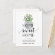Charming and modern moving announcement postcards let friends and family know about your new home sweet home! Design features a sweet potted houseplant illustration in green and gray watercolor with "home sweet home" in soft black script and block typography. Use the template fields to add your custom intro, new address and names. Information repeats on the reverse side with space for recipient addressing.