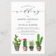Invite guests to your event with this customisable wedding invitation. It features watercolour potted succulents and cacti. Personalise by adding your details. This boho wedding invitation is perfect for summer weddings.