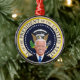 this patriotic round hanging christmas tree decoration features the new president elect in front of the u.s. presidential seal