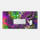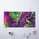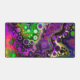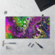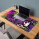 Desk mat in purple, pink, lime green, black and white fluid art pour painting style.