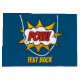 Word POW! over a cloud, inside an explosion burst. Used mostly for punch hitting. Comic sound effect. Custom background colour. Custom text on both sides.
