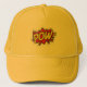 Pow ! Trucker is a yelow design trucker hat with word pow on it.