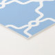 Destei's original white trellis pattern on a light blue background color. At the bottom, a slim brown panel with a white border adds contrast and has a personalizable name text. This design is a simple and lovely way to bring color and pattern into your practice space.