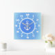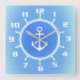 Powder Blue and White nautical anchor and wheel Square Wall Clock