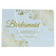 This beautiful gift bag is designed as a wedding gift or favour bag for Bridesmaids. It features an elegant powder blue and gold design with golden lace frills in the corners the text "Bridesmaid" as well as a place to enter her name, the couple's name, and the wedding date. Fill with gifts, favours, candy, or any other wedding swag or thank you gifts. Beautiful way to thank her for being a part of your special day.
