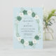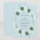 This design features a soft watercolor palette of powder blue, crisp white, and deep seafoam green. A lush arrangement of delicate roses and eucalyptus sprigs creates a romantic and serene aesthetic. Perfect for a classic spring or summer event, the painterly florals offer a timeless and airy feel.