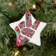 The design showcases a bold red hand set against a subtle grey motif. The vibrant colours and compelling imagery convey an undeniable sense of unity and strength, making it a distinctive and meaningful piece to hang on your tree or display year-round.