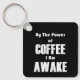 By the power of coffee I am awake! Funny text design about your love for always helpful coffee.