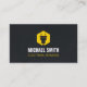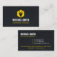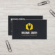 A modern, minimalist and professional business card with a logo of a silhouette of a power plug over a hexagon yellow shape. A texture effect for background. Perfect for electricians and those providing electrical wiring and lighting fixtures installation services. Personalise with your business information in the easy to read text templates provided.