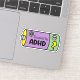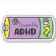 At the heart of this sticker's design is a clever and visually striking battery icon, split into vibrant shades of purple and green. The battery symbol is a direct and powerful metaphor for the energy and vitality often associated with ADHD. It resonates with the dynamic, sometimes fluctuating energy levels that are a hallmark of the ADHD experience, turning a common electronic symbol into a meaningful representation of self.